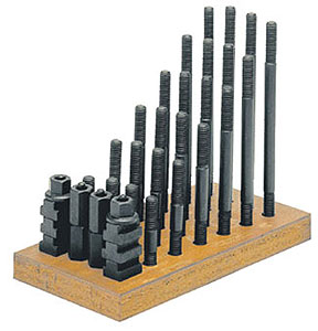 4 Verlängerungsmuttern, 6 Stufenspanneisen (3 Paar) ,6 T-Nutmuttern,