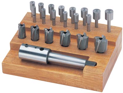 Mehrschneidiger Senker mit stirnseitiger Bohrung. Duch auswechselbare Führungszapfen ist ein Senker